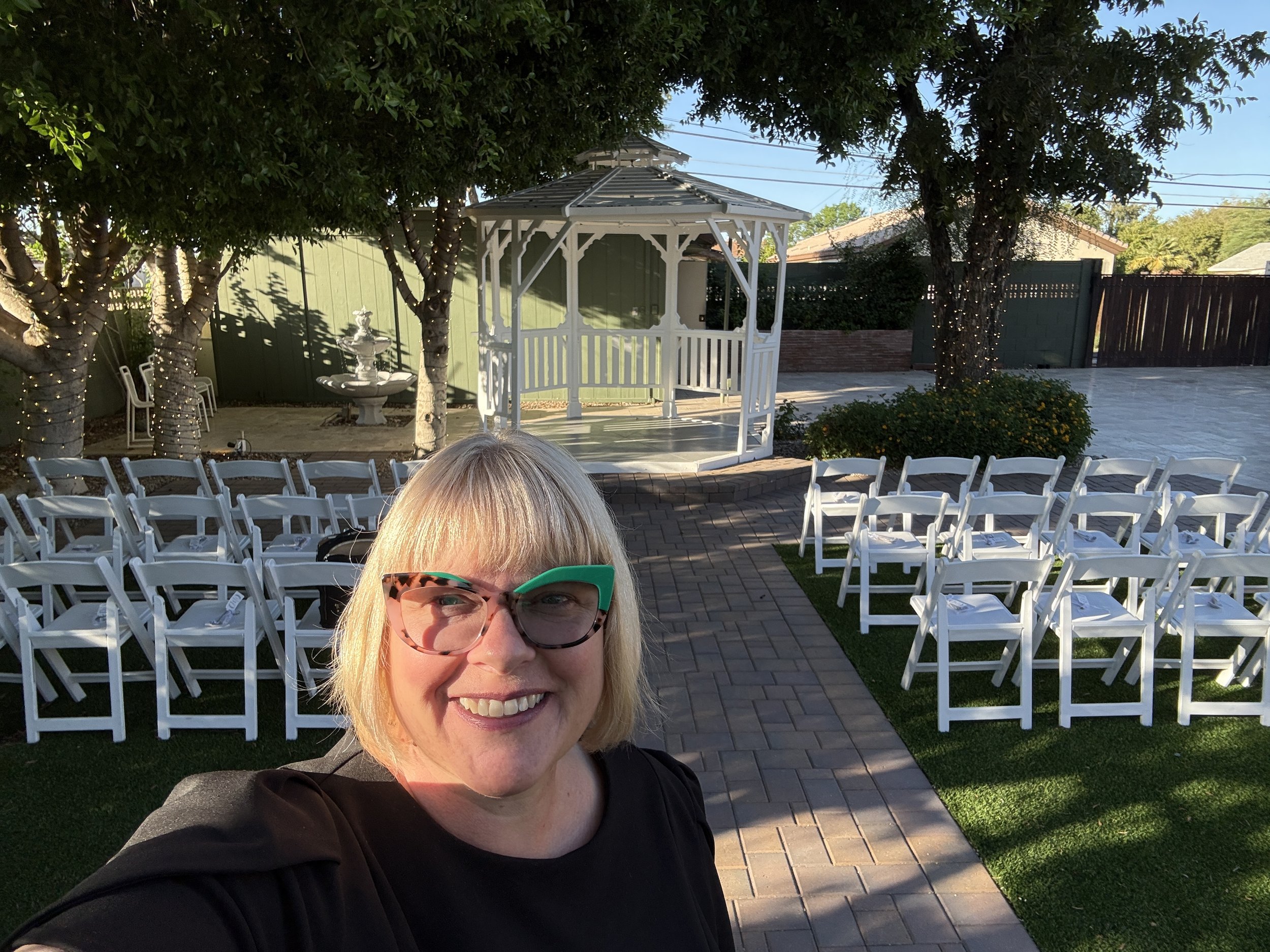 This quaint venue is great for a small ceremony, bridal shower or baby shower. Up to 40 guests max in the heart of the main street area of Gilbert. Restaurants nearby or host reception onsite.